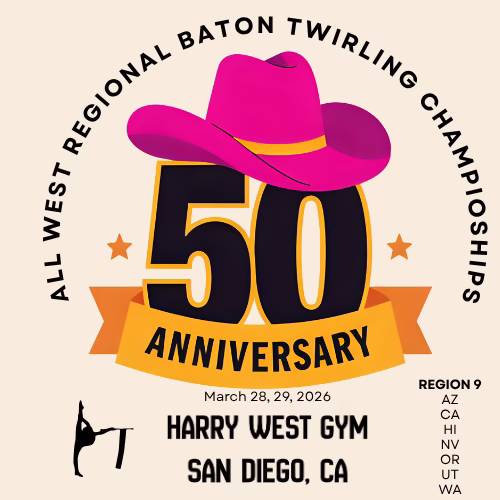 SAN DIEGO: 50th All West Regionals 2026 – America’s Finest City! Baton is Back! Dream It, Twirl It, Love It 50th Annual All West Regional Baton Twirling Championships *March 28-29, 2026 | NBTA 2026 Qualifier | Region 9 Golden Anniversary